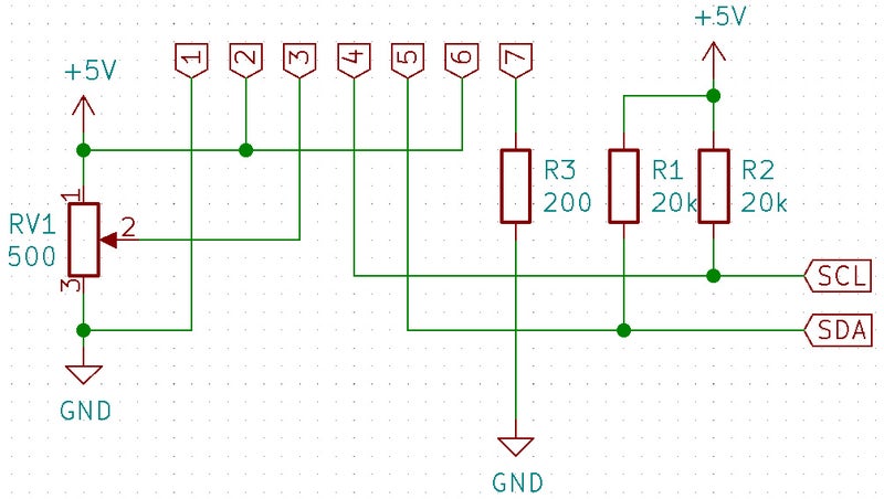 4番端子はSCL 5番端子はSDA 6番端子はバックライトのLED 7番端子はバックライトのLED