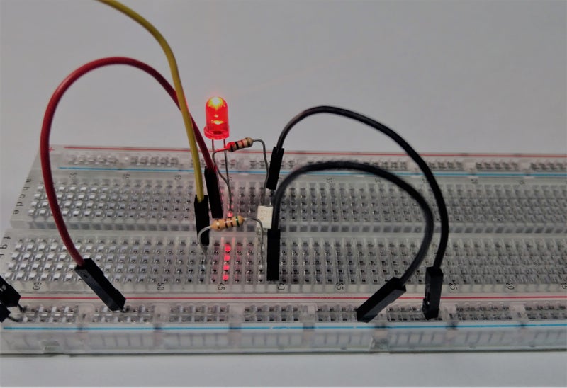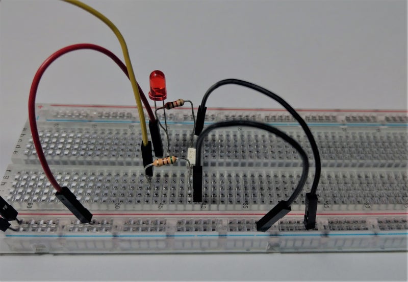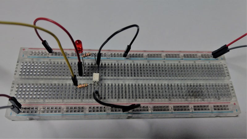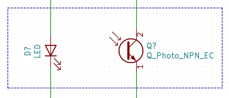 左側のLEDで出た光を右側のフォトトランジスタで受け取り、電気を流す。