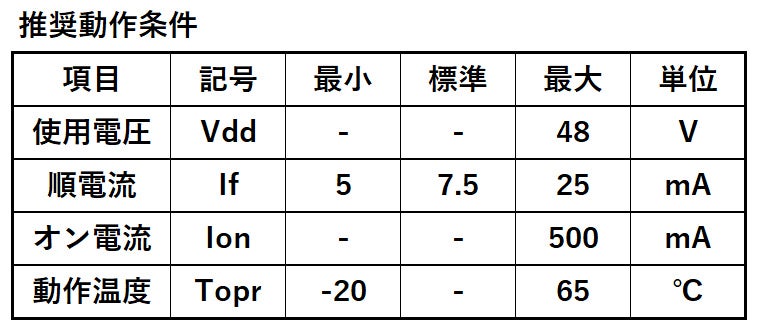 今回は発光側の順電流が欲しいため、標準の7.5mAを採用します。