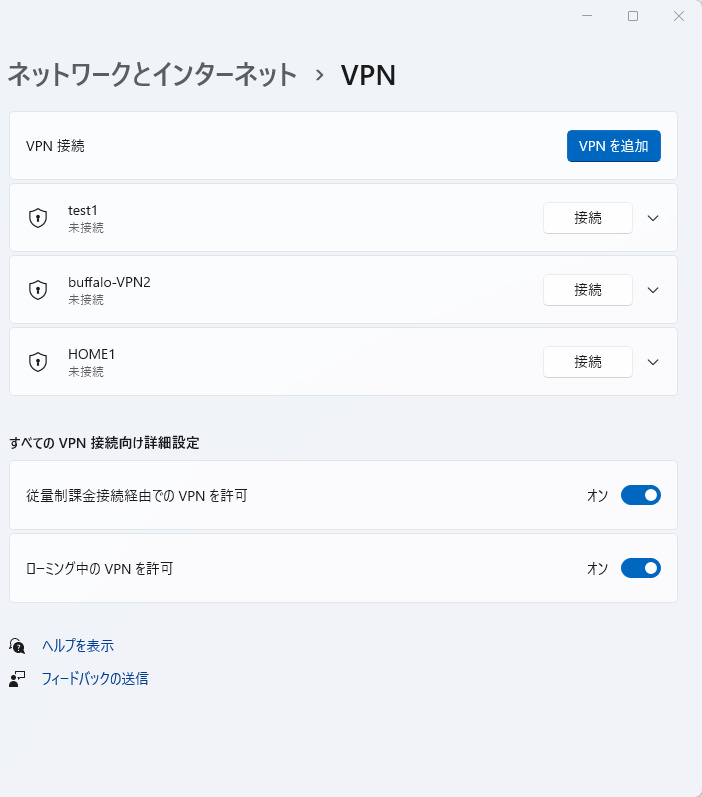 さっきと同じ画像の使い回しですが、作成したVPNの接続を行います。