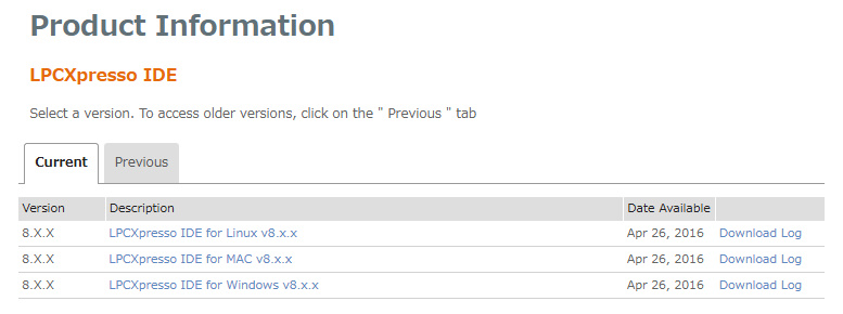 今回は入れるソフトはLPCXpresso IDE です。今回は v8.2.2を入れました。