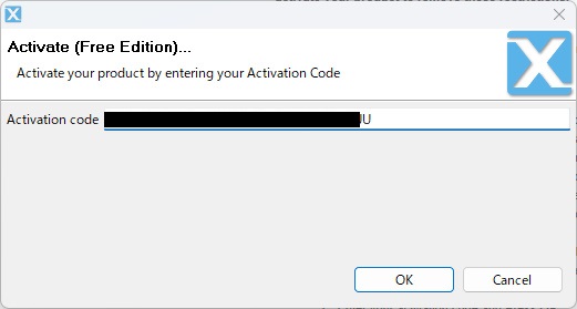 さっきコピーしたアクティベーションキーを入力して、OKを押します。