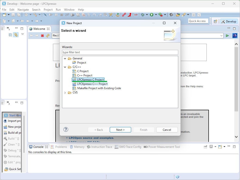 (C++をつかっている人は、下のLPCXpresso C++ Projectを選択)