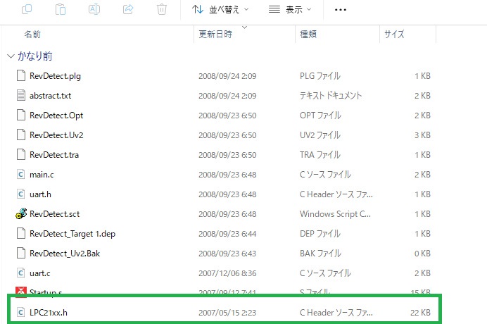 ZIPファイルを解凍すると、色々出てきますが、今回はLPC21xx.hをコピーもしくはD&D