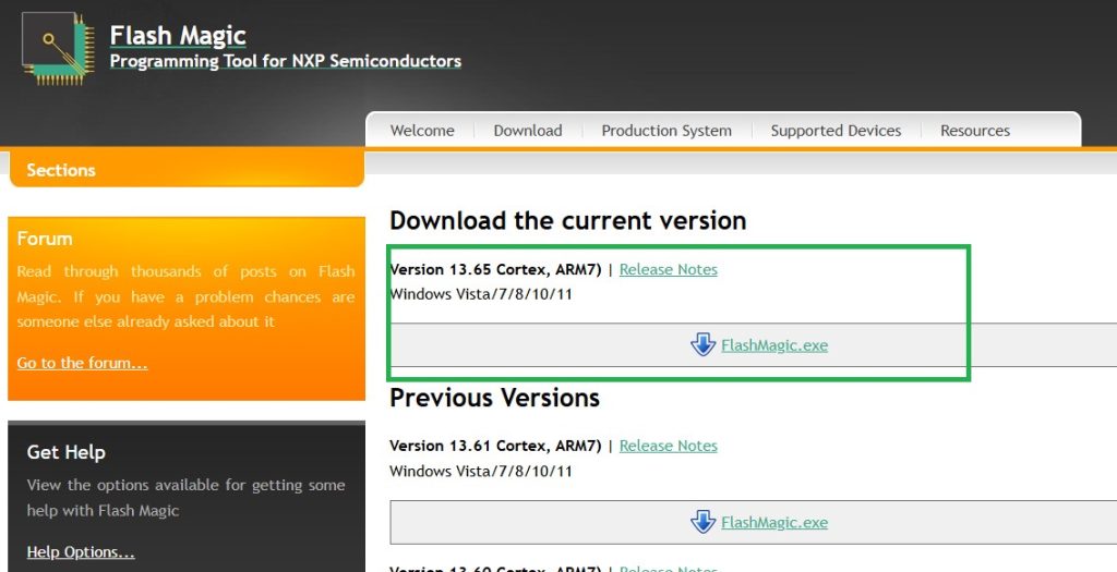 次に、マイコンに書き込むソフトを入れます。色々あるみたいですが、今回はFlash Magicを使います。