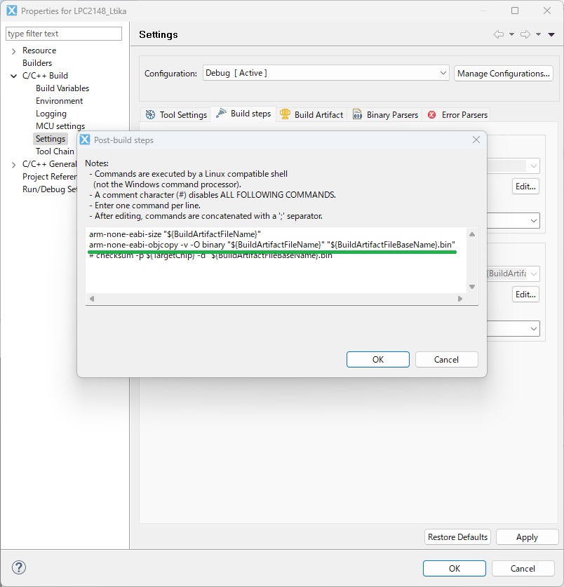 #がついている行があると思いますが、arm-none-eabi-objcopy -v -o binary “$ ・・・