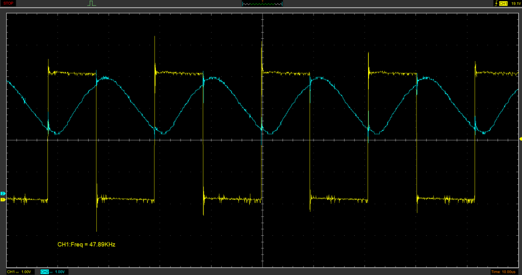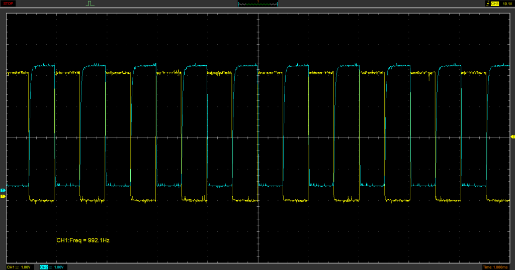 ちなみにですが、データシート的には応答時間が立ち上がり/たち下がり 10us なので、50kHzが限界です。実際にはもっと下がると思うので、まあ行けたとしても20kHzくらいですかね。