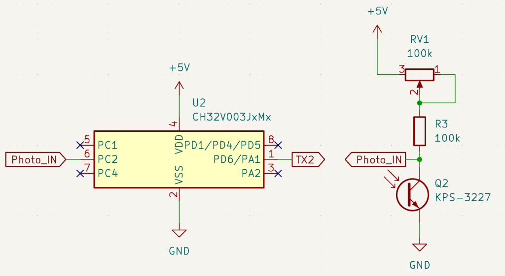 見えにくいですが、右上にあるLEDみたいなのがフォトトランジスタです。(ごちゃごちゃしていて、すみません)