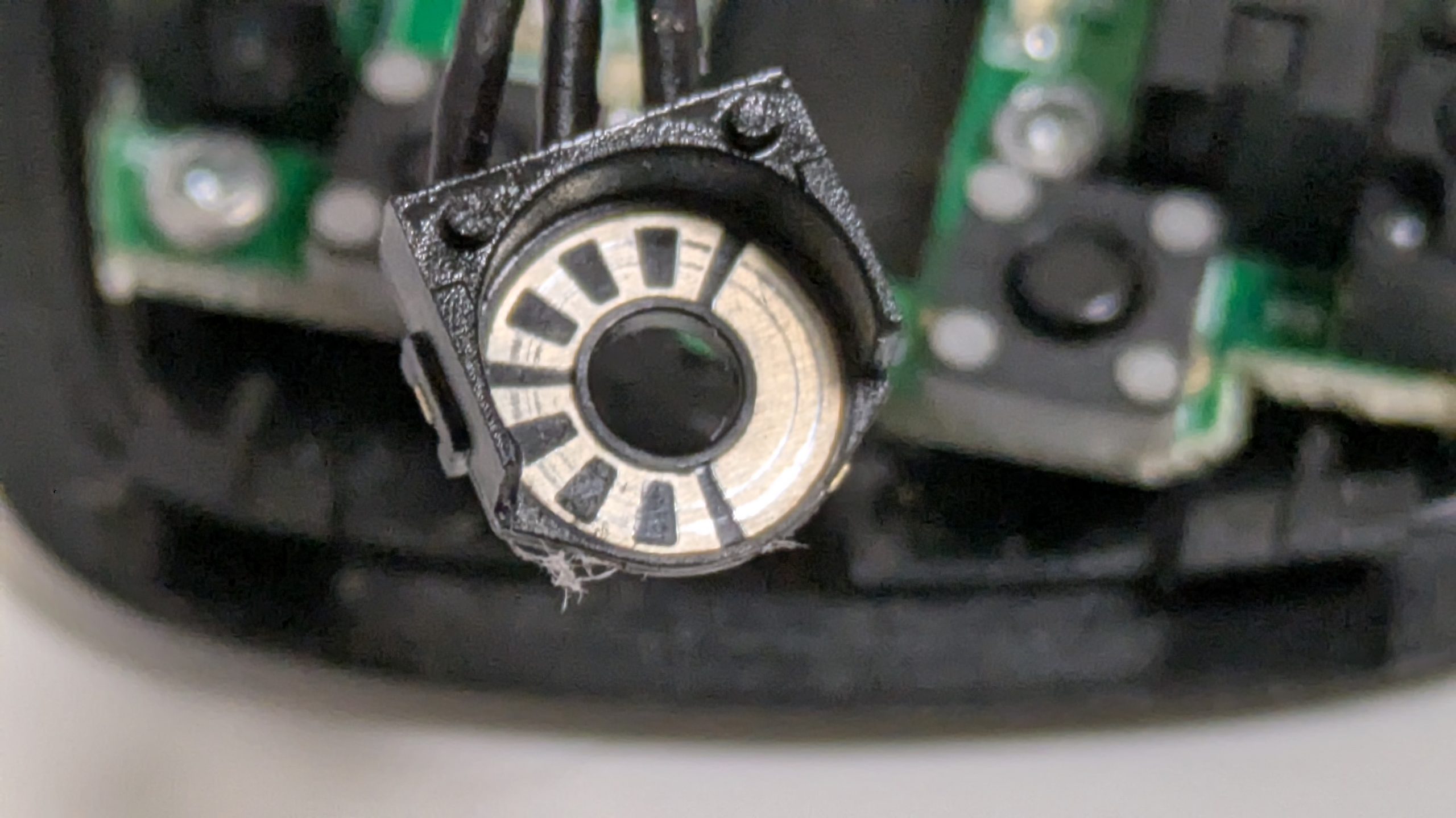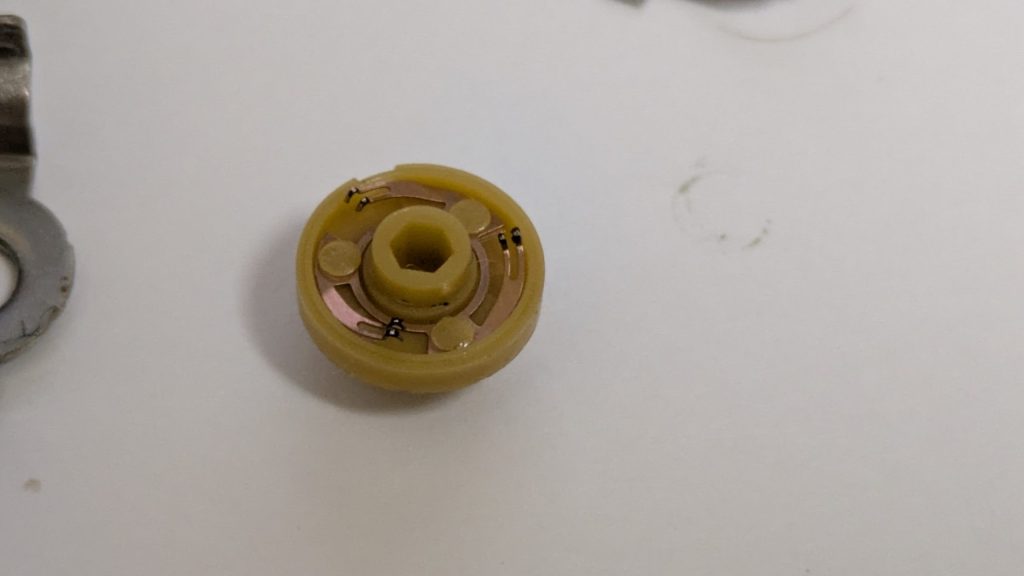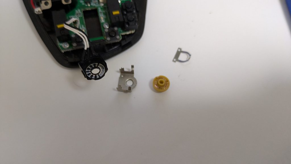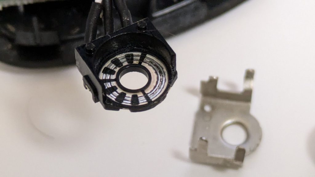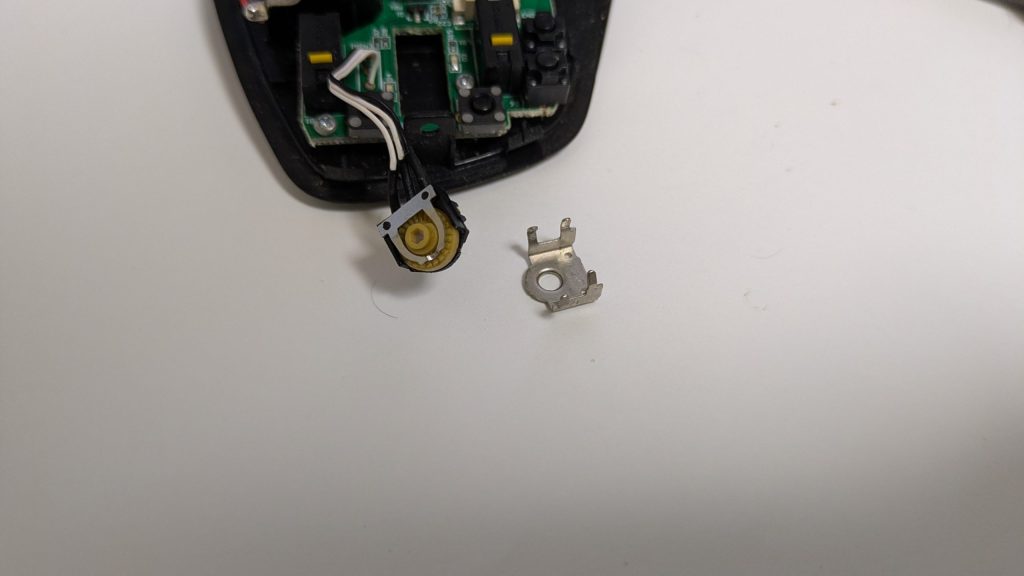 ちなみに、黄色いプラスチックの裏側に凸凹がついていますが、これがホイールのクリック感というか回すときのカチカチ感みたいなやつです。これを削ればスルスル動くようになりますよ。(自分は絶対にやらないですが)