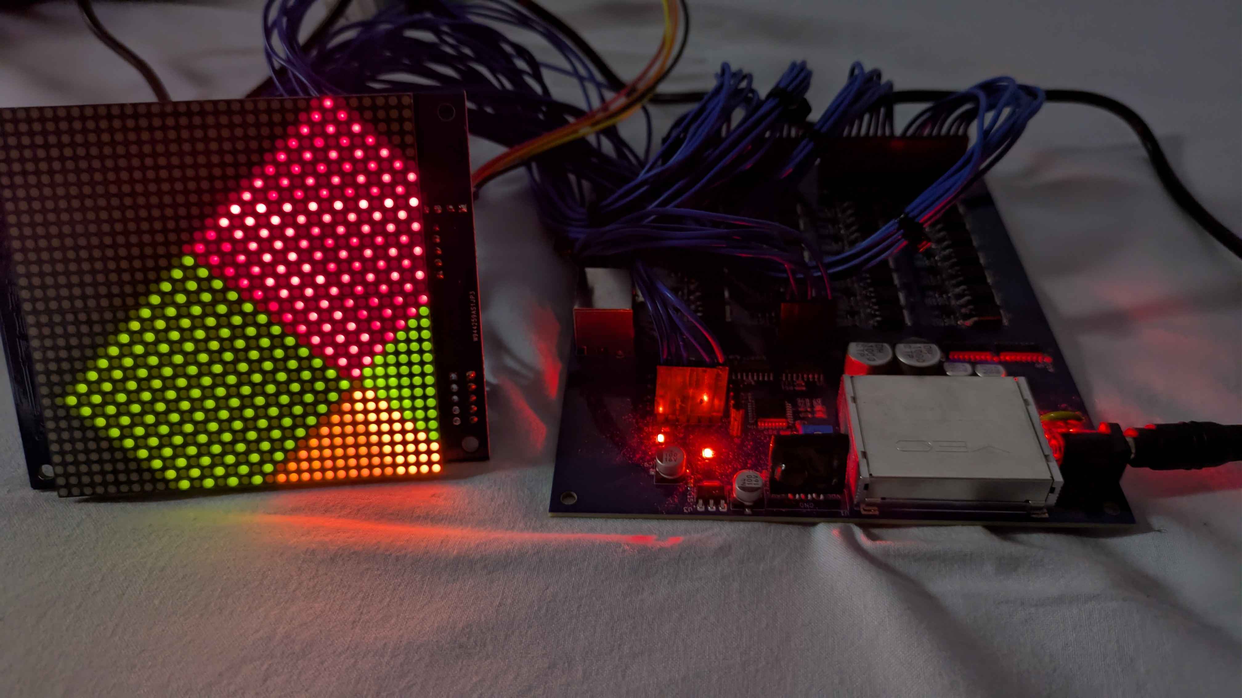 以前のものは、32×128ドットのドットマトリクスを1枚の基板にすべて実装していました。
